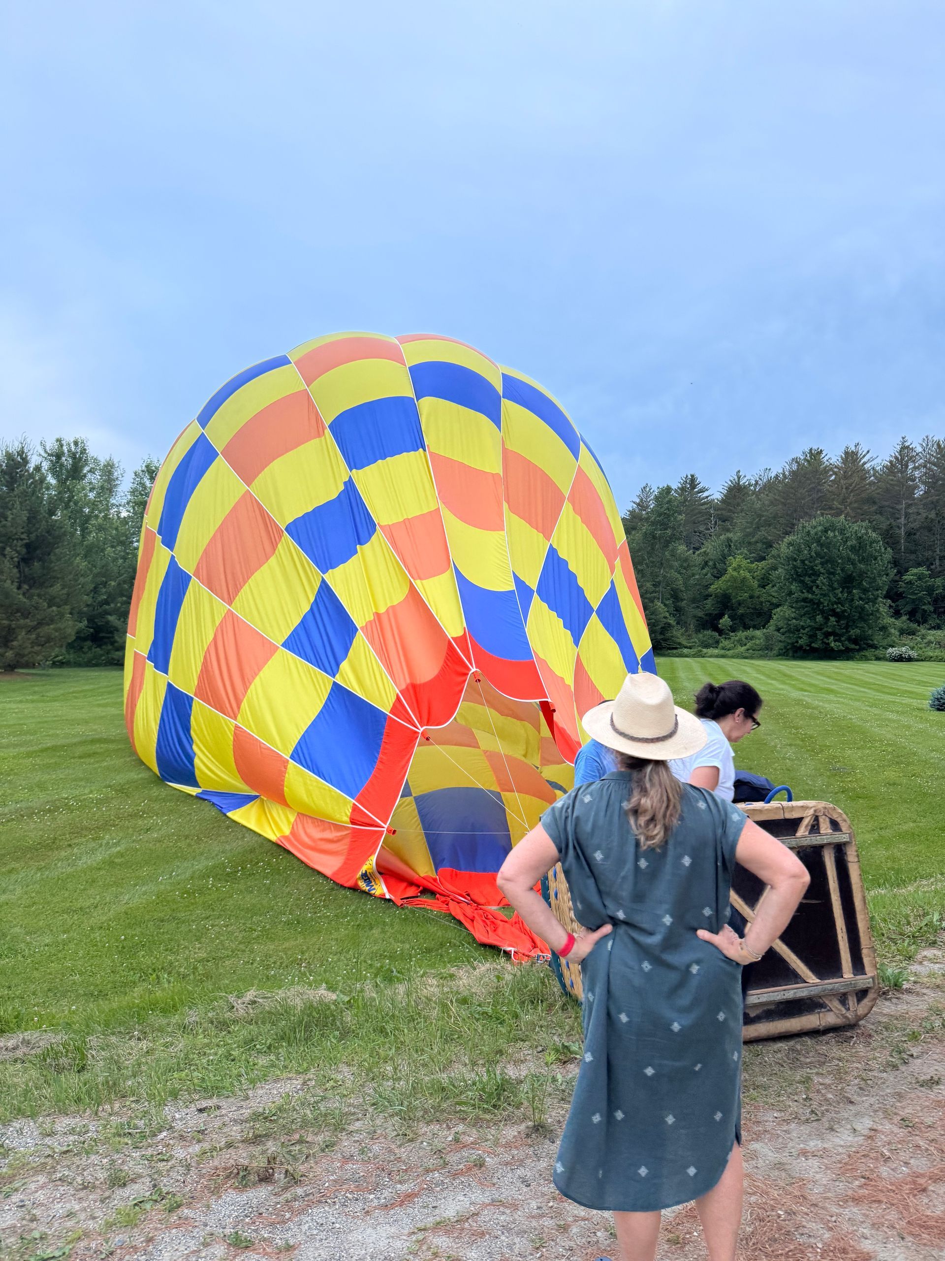The Wizard “Stop hiding behind the bush and come help us,” the wizard yelled, smiling and flaring the propane fire into the huge balloon. My sister-in-law, Aimee, and I peeked out, embarrassed to have been caught, and sheepishly walked toward the strangers. “Come closer. Grab the basket.” The wizard smiled as he flared the fire again and again. “Pfooof, pfooof, pfooof.” The sound and heat chased us back, as two men hopped out of the basket and pulled it to the ground. Only the wizard remained inside. “Pfooof, pfooof, pfooof.” “I feel like a munchkin in the Wizard of Oz,” I whispered to Aimee. It was a strange, unexpected site on this glorious Vermont evening. The setting sun glowed behind the hazy mountains, giving the mosquitos silent permission to ruthlessly devour my exposed skin. But I didn’t notice. The wizard held my attention. “We need to tip the basket over. Please help us.” The basket rested on a slight incline, and it was going to be a big drop. “Don’t worry. I went to school to learn how to do this safely. On the count of three, tilt it downhill. One, two, three.” Suddenly, the basket was resting on its side. Thankfully, Aimee and I were still upright, and the hot air balloon lay on the ground sideways slowly deflating. The pilot, who just might have been a real wizard, was somehow outside of the basket, upright and beaming. “That was fun,” he said. “Now, let’s deflate the balloon.” We watched our new friends wrap their arms around the bottom edge of the giant balloon and begin to walk toward the top, all the while squeezing out the air as if from a toothpaste tube. We mimicked the action, but it wasn’t as easy as it looked. It was apparently not about strength but technique, and I didn’t have it. My arms tired quickly, and I began to sweat. The mosquitos loved it. The glowing pilot brought over a giant bag. “Let’s get it in the bag.” We shoved half of the partially deflated balloon into the bag. “Now we’ll all sit on it at once and press more air out.” We all sat on the partially filled bag, and my head became covered on both sides by balloon fabric. It might have been easy to suffocate if we weren’t all working to deflate it. Having survived that task, we then shoved the rest of the balloon into the bag, sat on it, and, amazingly, it fit into the bag, fully deflated. “Ok, now for the basket.” Lift the basket? I thought. But, by now, Aimee and I were fully committed. I slapped my legs, now noticing the mosquitos. “One thing is for sure,” said the pilot wizard. “I’m lazy and I don’t like to lift heavy things. So, I have titanium tanks and keep my load as light as possible. We’re going to slide the basket into the truck.” The chaser truck pulled up, and we leaned the upper edge of the basket onto the bed, tilted it, and slid it in. Technique does matter, I thought. The mosquitos were now biting my scalp. “Please land in our yard next time!” Aimee called out as we said our goodbyes, thanking our new friends for a new experience. I’ve always been fascinated by hot air balloons. I enjoy them as a slow visual meditation in the air. They make me stop, stare, and be in the moment. For a moment. And, as I share this story, I reflect on the fun of learning something new while also bonding with and helping out strangers. “Stop hiding behind the bush and come help us,” the wizard had called out. Are you by chance hiding behind a bush? Or are you the one who needs help? Lots of love and gratitude, Denise Copyright 2025 Sound Awakenings LLC